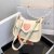 The bag is of great quality. It's a beautiful beige color, just as shown in the picture. However, it's quite compact, so it might not hold a lot. It's great for carrying small essentials.