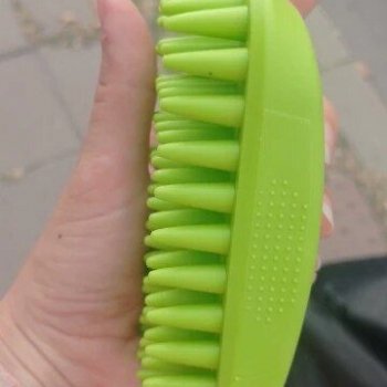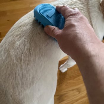 It's a big help with our golden retriever, especially for reaching his undercoat and cleaning out all the dirt he collects every day. Bathing him has become easier, plus he seems to enjoy the little massage.