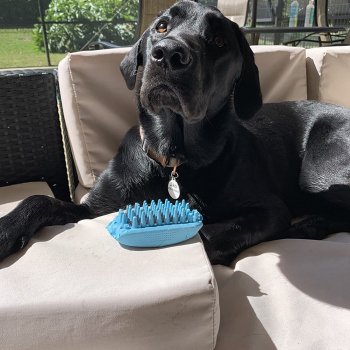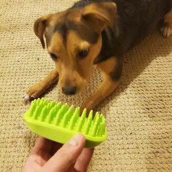 After our Aussies needed to regrow their fur post-demattng, this brush was a lifesaver. We don't use it daily now, but it's still great for bathing and getting shampoo into their double coats.