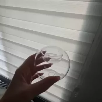 I thought the glass would be smoky in color, but it's actually clear and transparent. There's a hole at the bottom, so you can put a garland, a Christmas tree, or light bulbs inside. In the first photo, you can see where I put my finger there.
