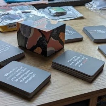 This game serves as a fun conversation starter to enjoy with your partner. My only critique is that the questions tend to focus more on physical intimacy rather than emotional or intellectual intimacy.
