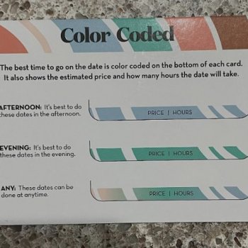 The card quality is superb. While some dates are a bit lackluster or predictable, others are refreshingly creative and unconventional, bringing couples closer together. Overall, it's a 50/50 mix, but worth it if you want to inject some variety into your date night decisions.