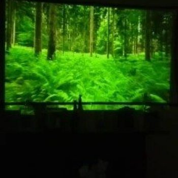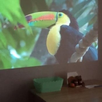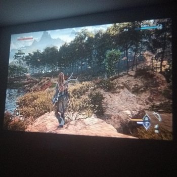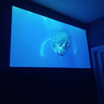 Had initial difficulties with focus and projection, but it got better. The audio could be louder, but an Echo Dot helps.