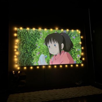 The image gets bigger the further away you place it. Better sound with a Bluetooth speaker. Store it in its box to avoid dust. Android system supports many apps. Had issues mirroring my phone screen. YouTube and other apps work, but Netflix doesn’t. Very satisfied overall.