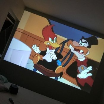 The projector is great, with a huge, clear image. The only drawback is the low sound, but it's worth it. Highly recommend it!